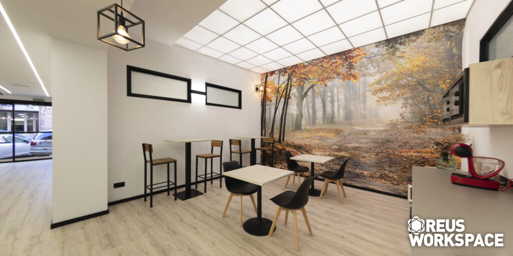 Tenim a la vostra disposició un espai per a esmorzar, dinar, fer un cafè o simplement desconnectar una estona de la feina. En la comoditat de les nostres instal·lacions on hi trobaràs microones i nevera, podràs fer un petit descans en el teu dia a dia i relacionar-te amb altres persones.